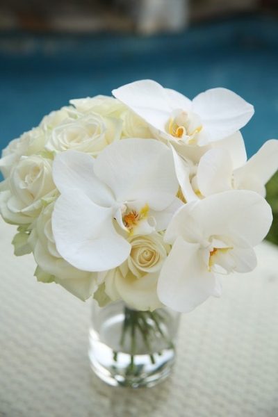 王道の白いバラと、蝶が舞うような美しい姿が魅力的なコチョウランをぜいたくに使ったホワイトブーケ![]()