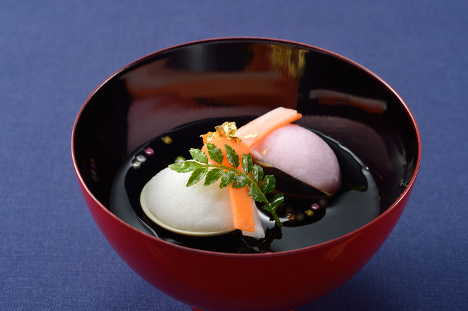 披露宴会場でお客様がお椀の蓋を取った瞬間に、