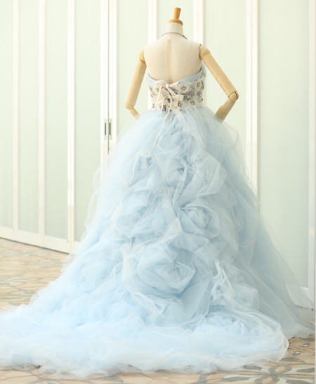 淡いブルーのチュールドレスは胸元にお花がたくさん![]()
