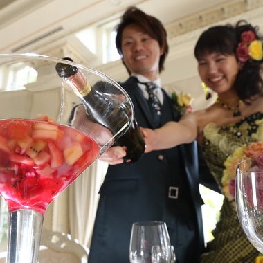 そのグラスに新郎新婦様がスパークリングワインを注ぐことで完成するフルーツシャンパンicon:emoji087
