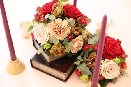 例えばお花を飾る回りにキャンドルを飾ったり…